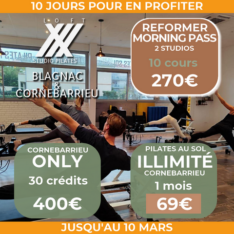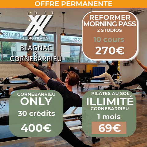 -> Cours d'essai Pilates Reformer limité à 1 cours par personne.